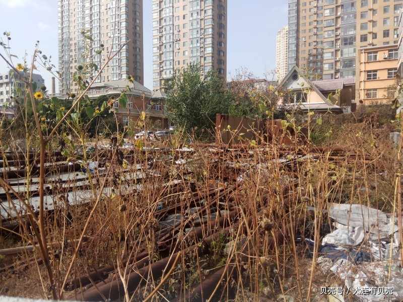 该地块目前处于荒地状态,图中北侧建筑为原市政府交际处黑石礁宾馆,伪满洲国省长金碧东公馆旧址,位于大连市沙河口区黑石礁西村61号,临旅顺南路。是大连市第一批重点保护建筑。