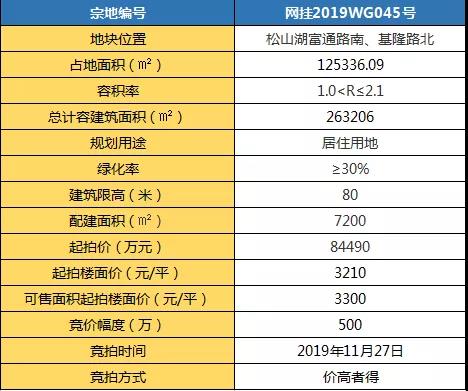 地块占地面积为125336.09㎡,总计容建筑面积263206㎡,起拍总价为84490万元,起拍楼面价为3210元/㎡。
