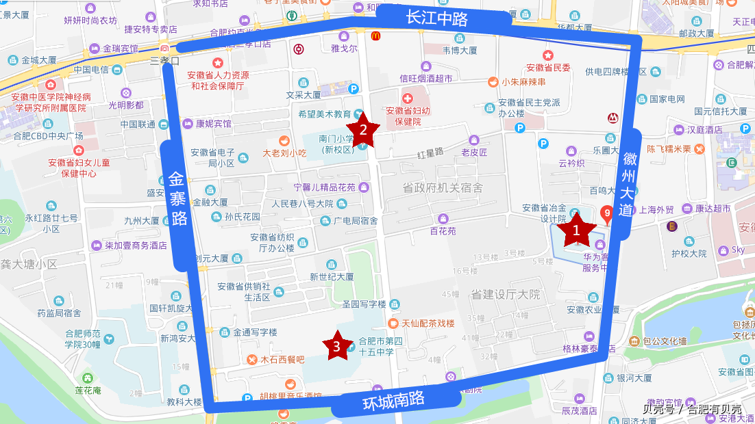 2、本部学区范围:长江中路以南,金寨路以东,徽州大道以西,环城南路以北。