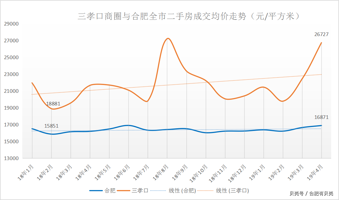 教育资源分配不均衡自然导致了不同区域教学水平高低不一,造成了一些所谓“优质学区”。当然,短期内,教育资源也是不可多得的,特别是拥有多年一线教学经验的骨干教师和班主任更是不可多得的教育资源,优质学区片区价格变化也跑赢了合肥房价整体趋势,以南门小学本部所在在三孝口商圈为例,从2018年1月至今,集“老破小”和“学区”代名词为一体的三孝口,整体涨幅超过了合肥全市整体涨幅,特别是在每年3-4月开学前,一些家长迫不及待要赶在6月合肥学区划分和正式网络报名前赶末班车,而每年开学前后的8-9月份,学区也会有一波小高潮。